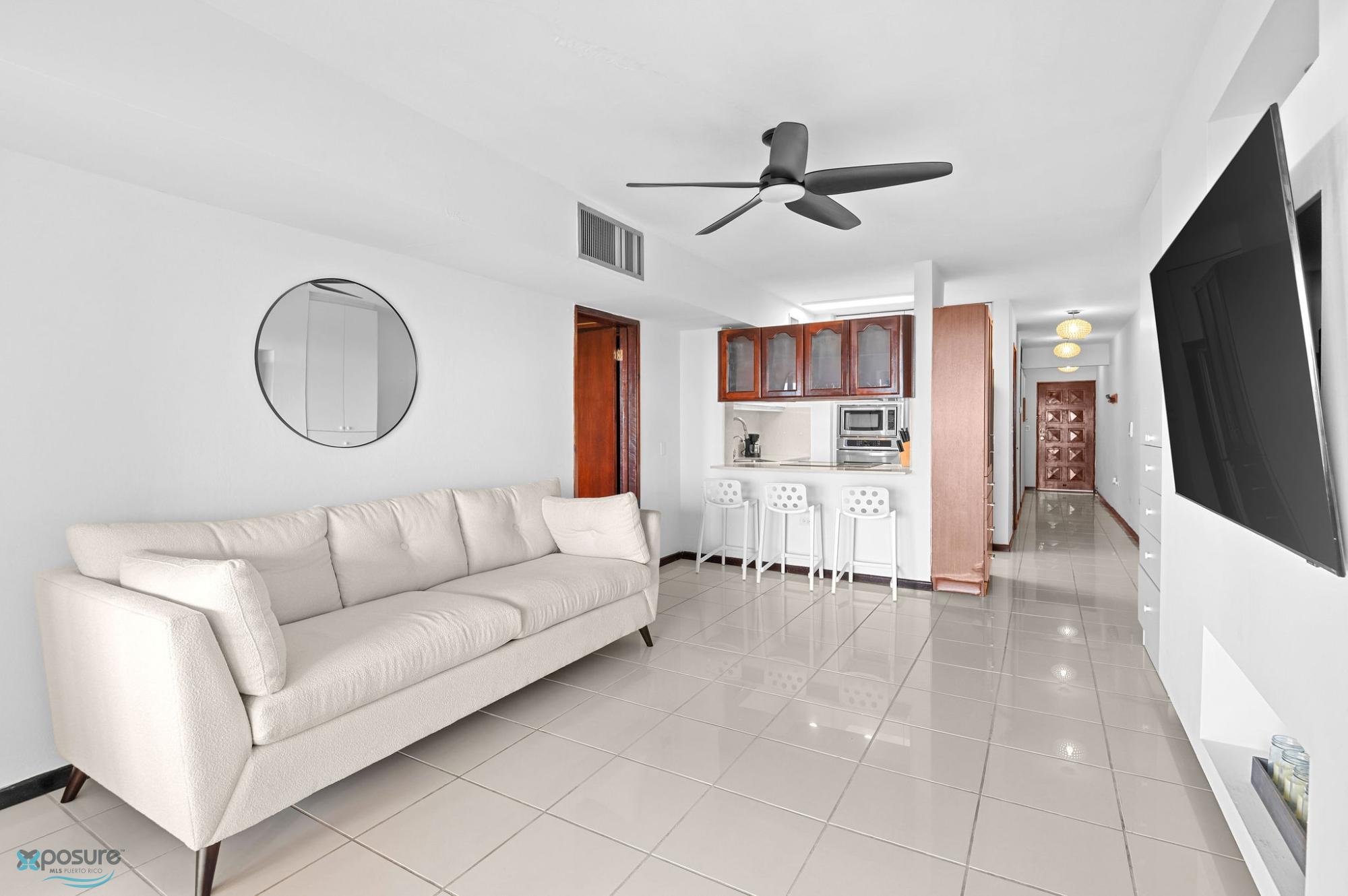 Tu vida frente al mar comienza aquí – Palmanova Plaza, Palmas del Mar Bienvenido a un espacio donde cada día se siente como vacaciones. Este apartamento de 1,338 pies cuadrados, distribuido en 2 habitaciones y 2 baños, ofrece amplitud, luz natural y vistas panorámicas al mar que elevan cualquier estilo de vida. Lo mejor: el apartamento se alquila completamente amueblado y equipado, incluyendo carro de golf y estacionamiento asignado. Solo necesitas traer tu maleta y comenzar a disfrutar. El condominio permite short-term rental, ideal para quienes buscan un hogar versátil o una propiedad con potencial de inversión. Características del apartamento Sala, comedor y cocina de concepto abierto Balcón y terraza privada con vista directa al océano Cocina equipada con nevera, estufa de tope, horno, microondas y lavaplatos Lavadora/secadora y aire central Habitación principal con cama queen, TV y terraza privada Mobiliario completo: sofá, sofá cama, mesa alta con sillas, escritorio y silla Área exterior amueblada con sofá y sillas tipo columpio Sobre Palmanova Plaza y Palmas del Mar Palmanova Plaza está ubicada dentro de Palmas del Mar, en Humacao: una comunidad vibrante y exclusiva que combina lujo, seguridad y el encanto relajado del Caribe. Sus residentes disfrutan de playas espectaculares, campos de golf, canchas de tenis, restaurantes, bares, tiendas, supermercados, seguridad 24/7 y un ambiente inigualable tanto para vivir como para invertir. Amenidades del edificio Piscina en la azotea con vista al mar Ascensor Estacionamiento adicional por orden de llegada Generador con capacidad completa para todos los apartamentos y áreas comunes Un apartamento listo para vivir, rentar o convertir en tu refugio frente al mar. Un estilo de vida privilegiado, una ubicación espectacular y la comodidad de un hogar listo desde el primer día. Detalles adicionales Mínimo de alquiler: 1 año Documentos y requisitos de arrendamiento serán solicitados..