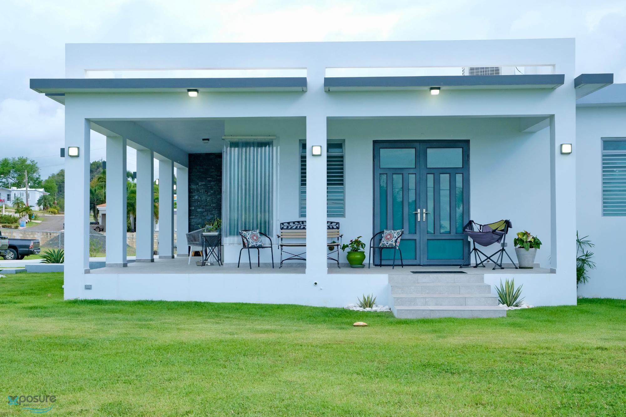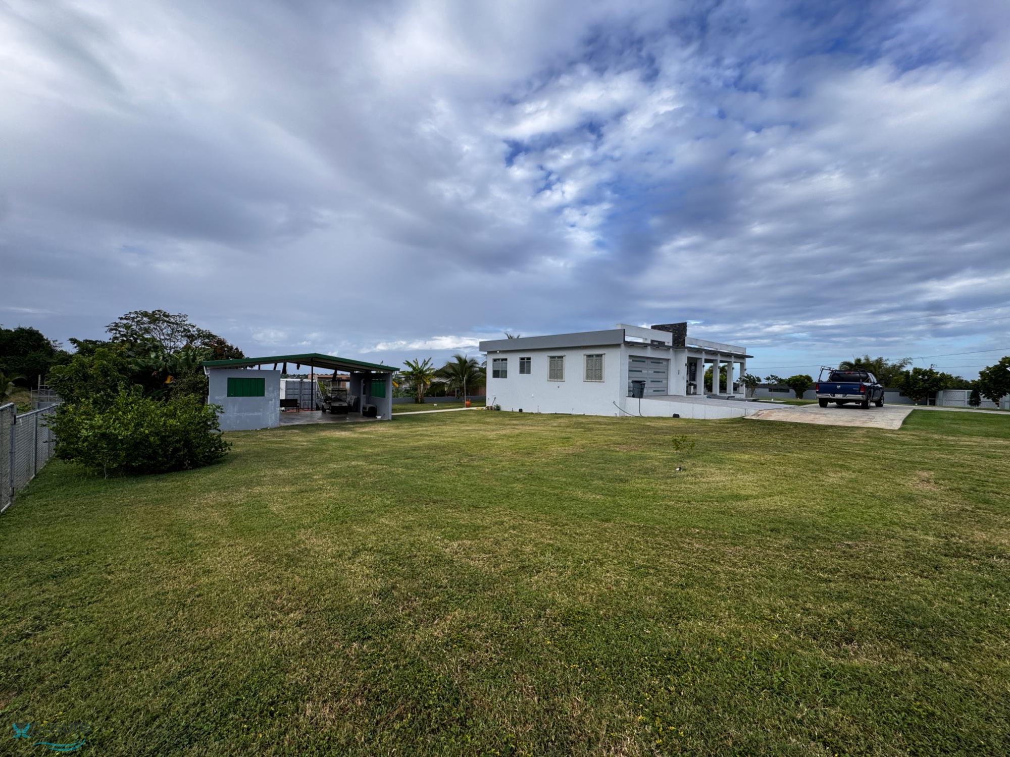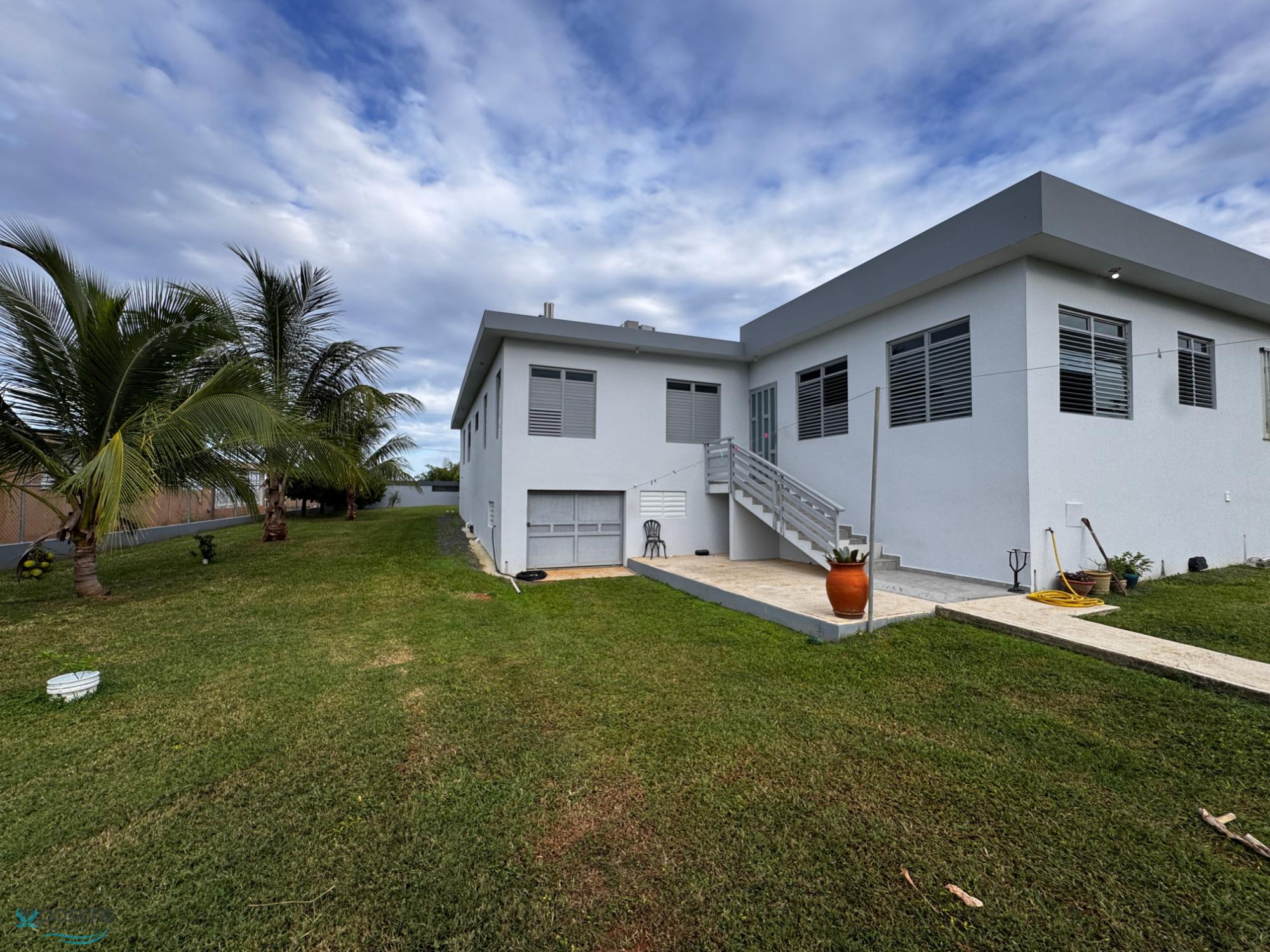 Elegant and modern property with 3.2 acres of land, built in 2022. This centric located property has security doors and windows, 3 bedrooms, 3 bathrooms, open concept living-kitchen-dining-family room, interior laundry and storage, large interior terrace adaptable to family room, balcony, carport for two cars and additional outdoor covered parking with bathroom. It has approximately 4,400 square feet of total construction. Modern bathrooms and kitchen cabinets with granite countertops. Large 20' x 14' outdoor storage area, New 18 solar panels (450 watts) with 8 batteries, solar heater, 10 feet high ceilings, Jacuzzi, 3 A/C, Dog shelter and 1,800 gal Stanley Steel water reserve. All this on a 3.2-acres of land with fruit trees, fenced in control access community, Urb. Monte Verde at Road 490 km 2.6 at Corcovado community in Hatillo PR. Verification of funds and/or pre-qualification for appointments is required..