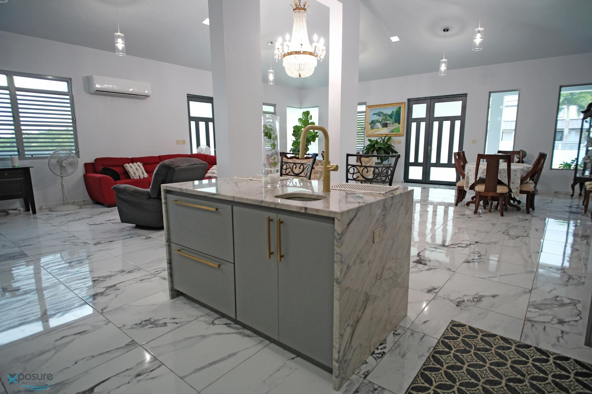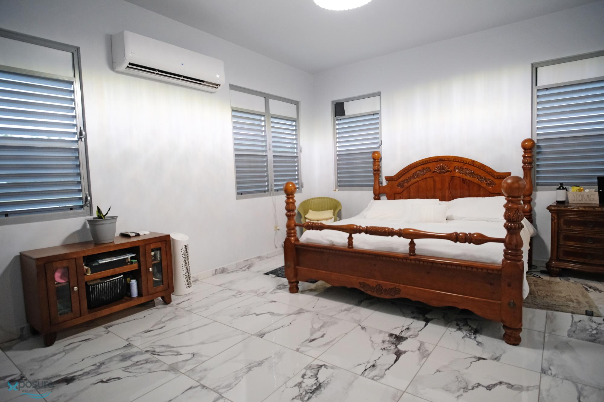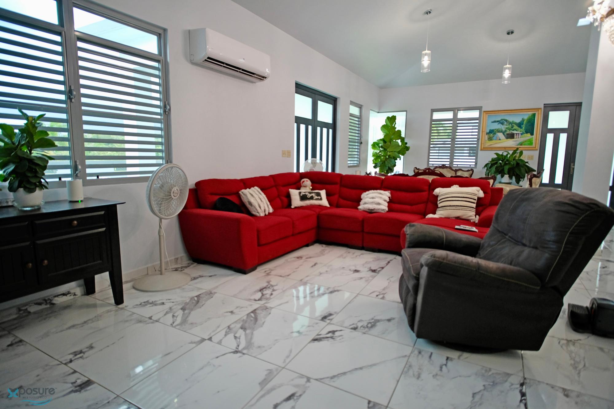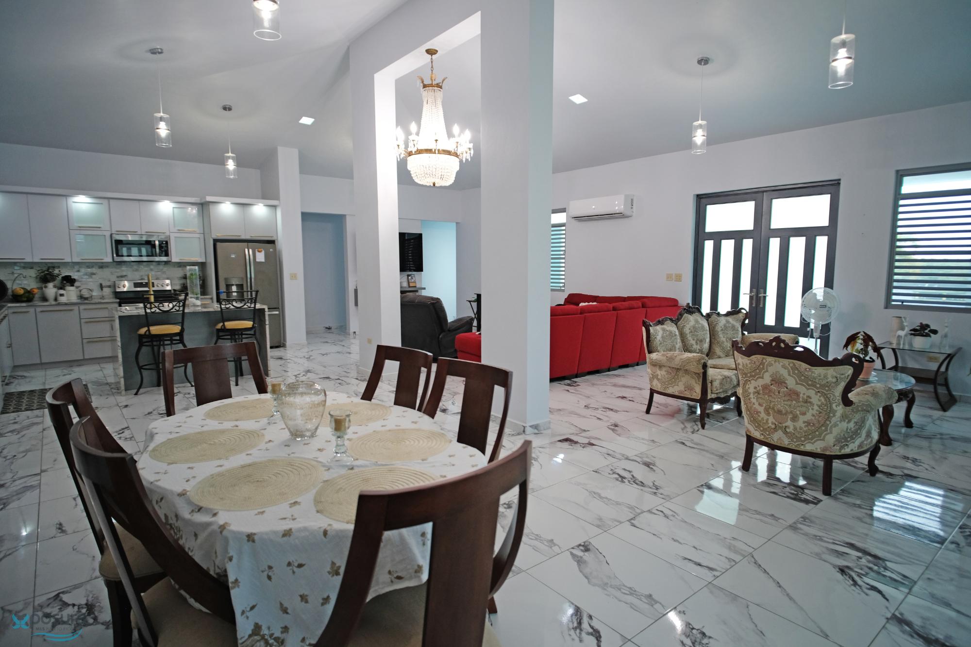 Elegant and modern property with 3.2 acres of land, built in 2022. This centric located property has security doors and windows, 3 bedrooms, 3 bathrooms, open concept living-kitchen-dining-family room, interior laundry and storage, large interior terrace adaptable to family room, balcony, carport for two cars and additional outdoor covered parking with bathroom. It has approximately 4,400 square feet of total construction. Modern bathrooms and kitchen cabinets with granite countertops. Large 20' x 14' outdoor storage area, New 18 solar panels (450 watts) with 8 batteries, solar heater, 10 feet high ceilings, Jacuzzi, 3 A/C, Dog shelter and 1,800 gal Stanley Steel water reserve. All this on a 3.2-acres of land with fruit trees, fenced in control access community, Urb. Monte Verde at Road 490 km 2.6 at Corcovado community in Hatillo PR. Verification of funds and/or pre-qualification for appointments is required..